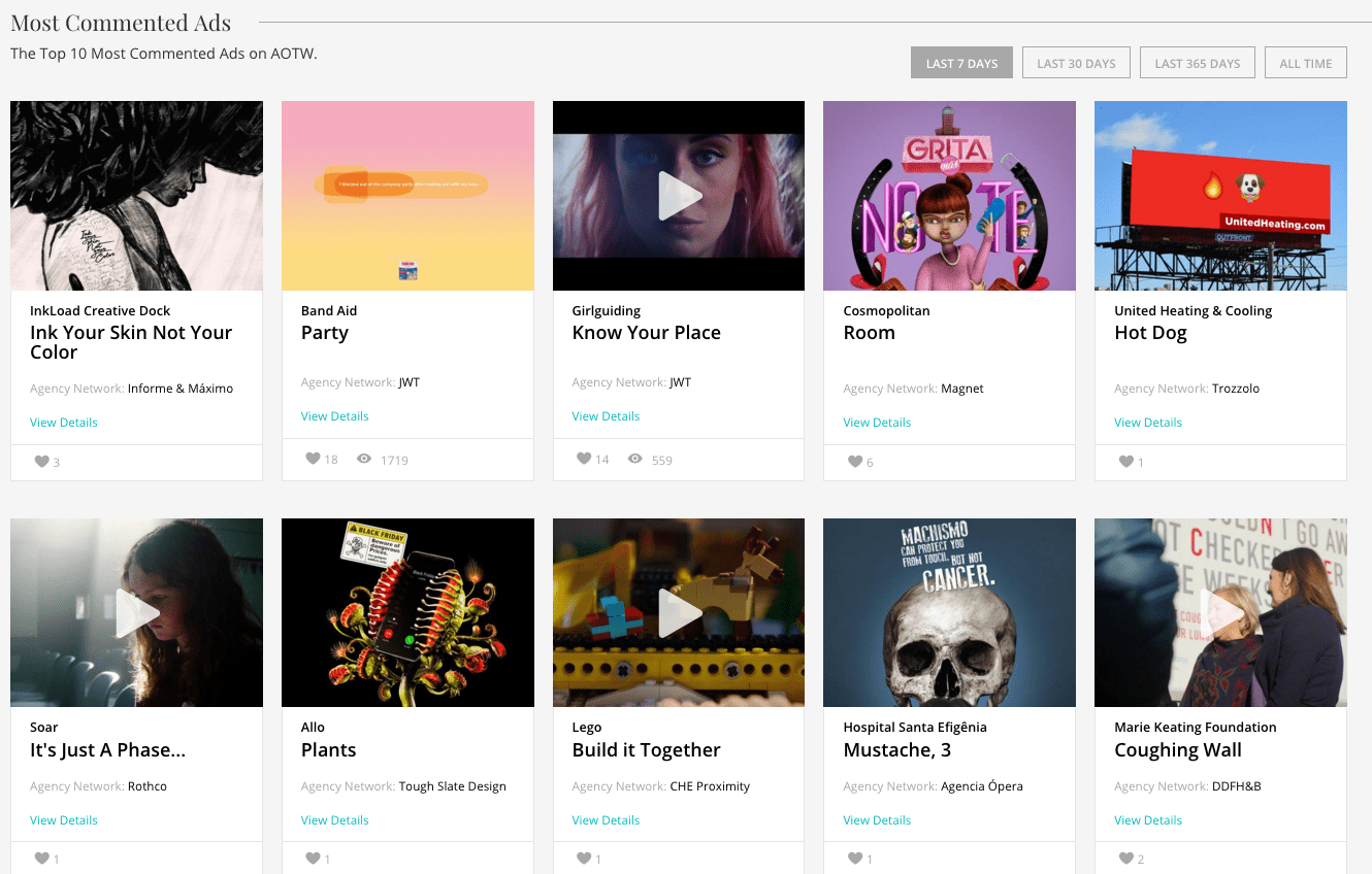Já são 4 campanhas enviadas, 4 campanhas publicadas, 100% de aproveitamento. 14 peças selecionadas, 5 Top da Semana no Ads of the World, 1 Top Like do Mês no Ads of the World, 9 peças no Adeevee, 3 Pre-select na Lürzer’s Archive e hoje 1 campanha no Best print of the week da Best Ads on TV.